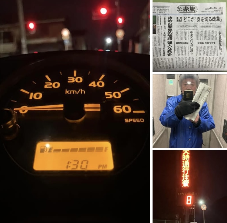 その後、しんぶん赤旗日曜版を山間部と坂道コースに配達。