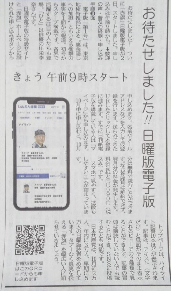 日曜版電子版の発行/「赤旗」の歴史に新しい扉開く