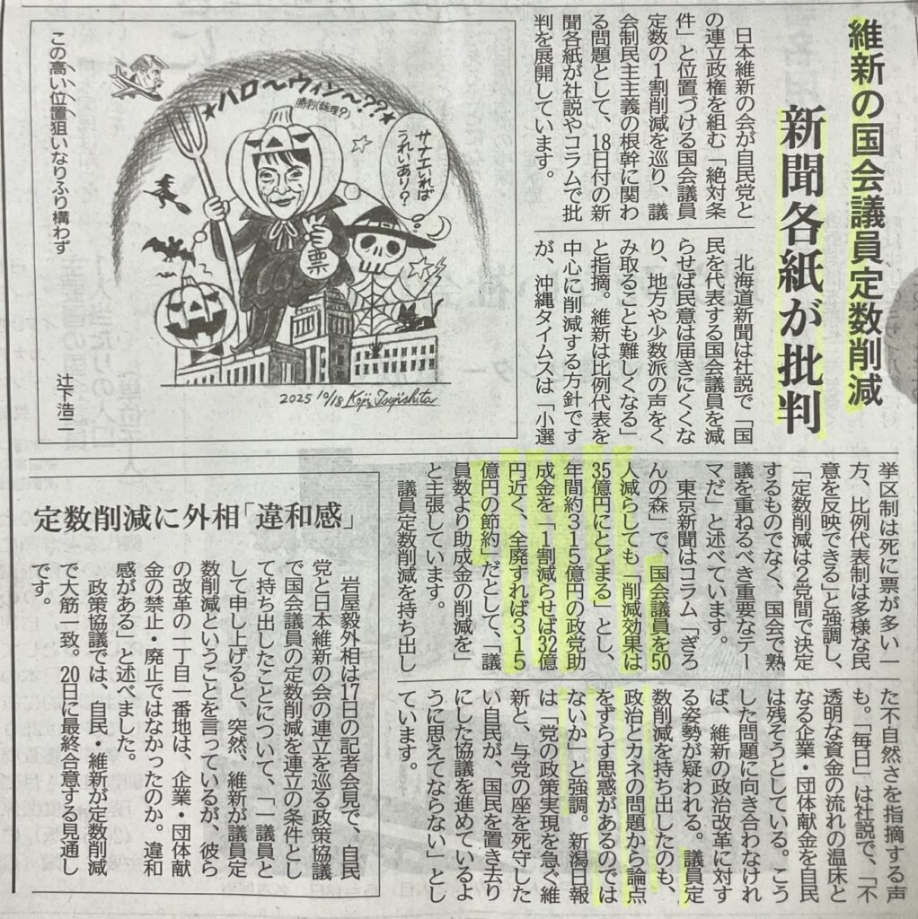 国会議員削減(35億円)と政党助成金(維新32億円)