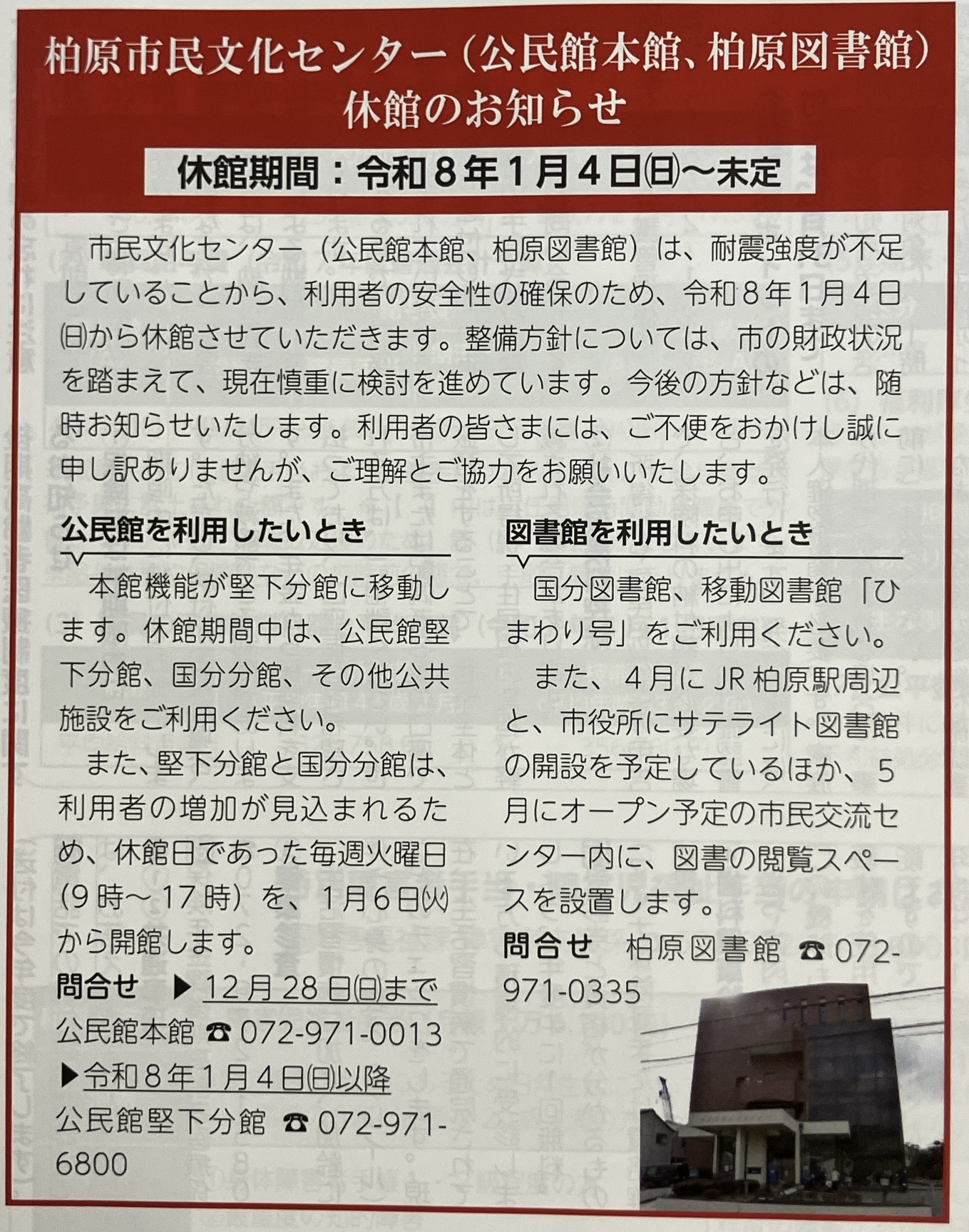 市民文化センター来年1月4日より休館?