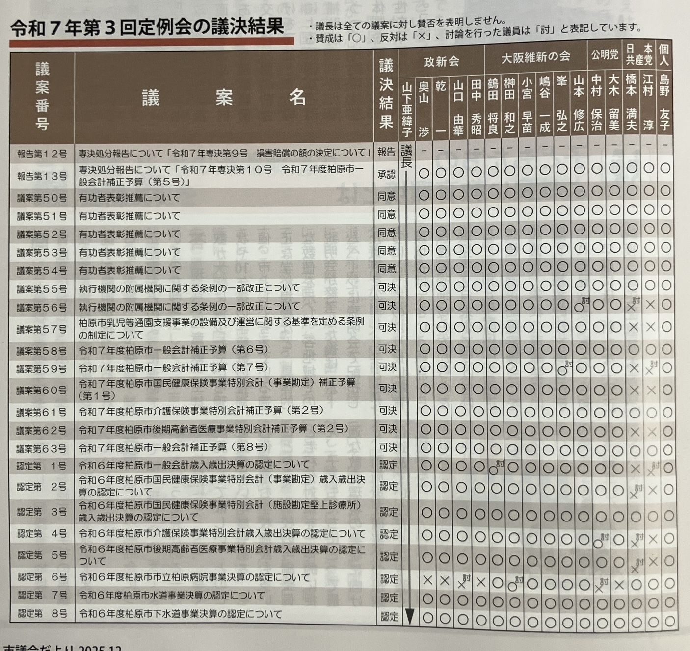 柏原市議会第4回定例議会(12月議会)の開会日でした。