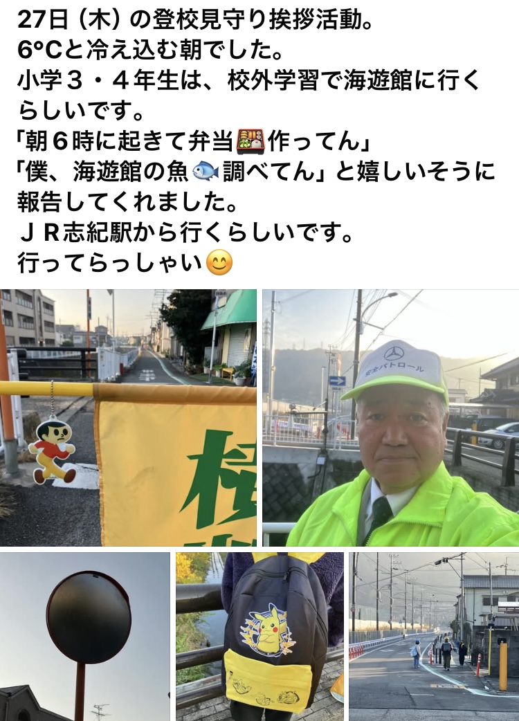 3・4年生は、青帽子にリュックサック姿で10人ほどのお友達が嬉しそうに登校しました。