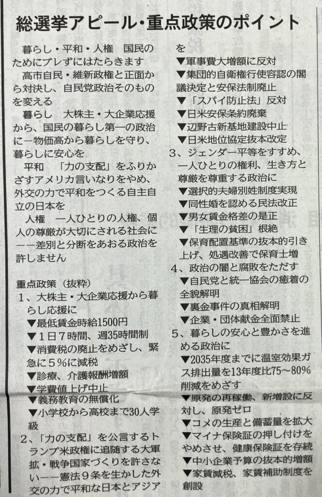 暮らし・平和・人権 国民のためにブレずにはたらきます/2026年1月21日 日本共産党の総選挙政策
