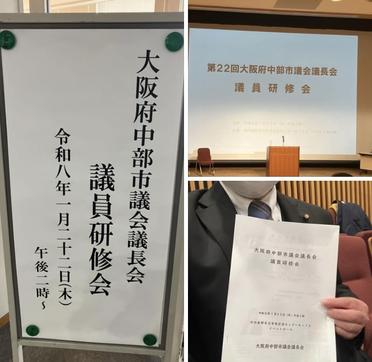 大阪府中部市議会議長会の議員研修会が河内長野市で行われました。