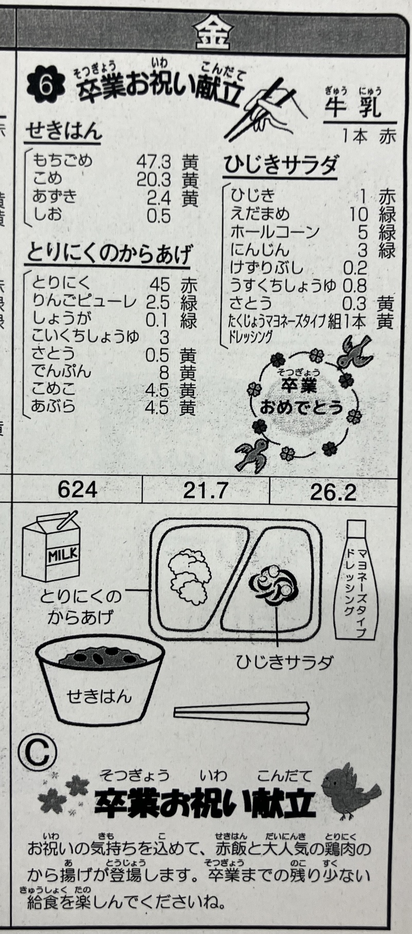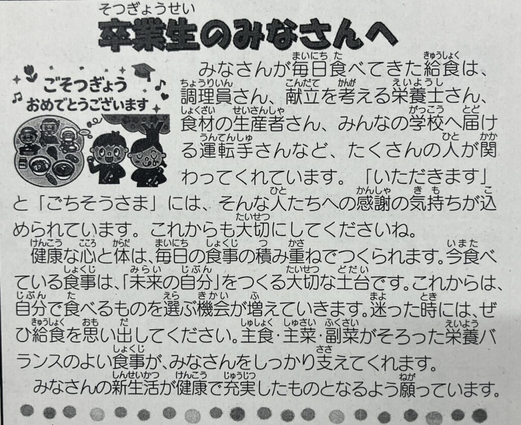 学校給食卒業お祝い献立