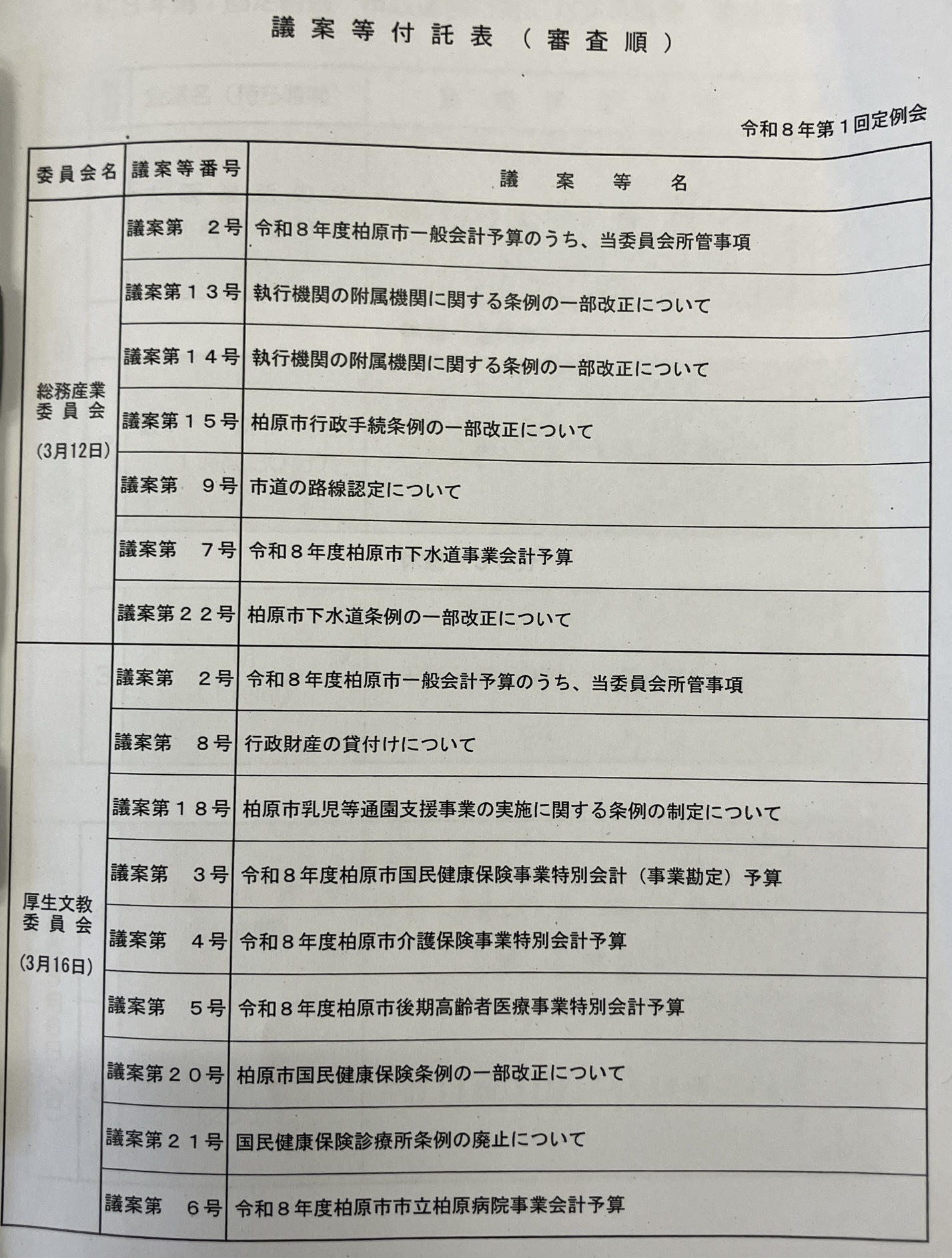 柏原市議会の常任委員会です。