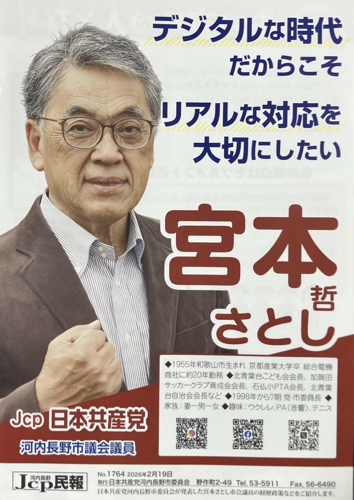 4月12日告示、19日投票の河内長野市会議員選挙の支援です。