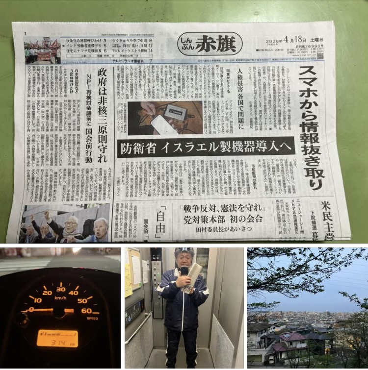 しんぶん赤旗の配達を2地域としんぶん赤旗日曜版を山間部も含め4地域の配達。