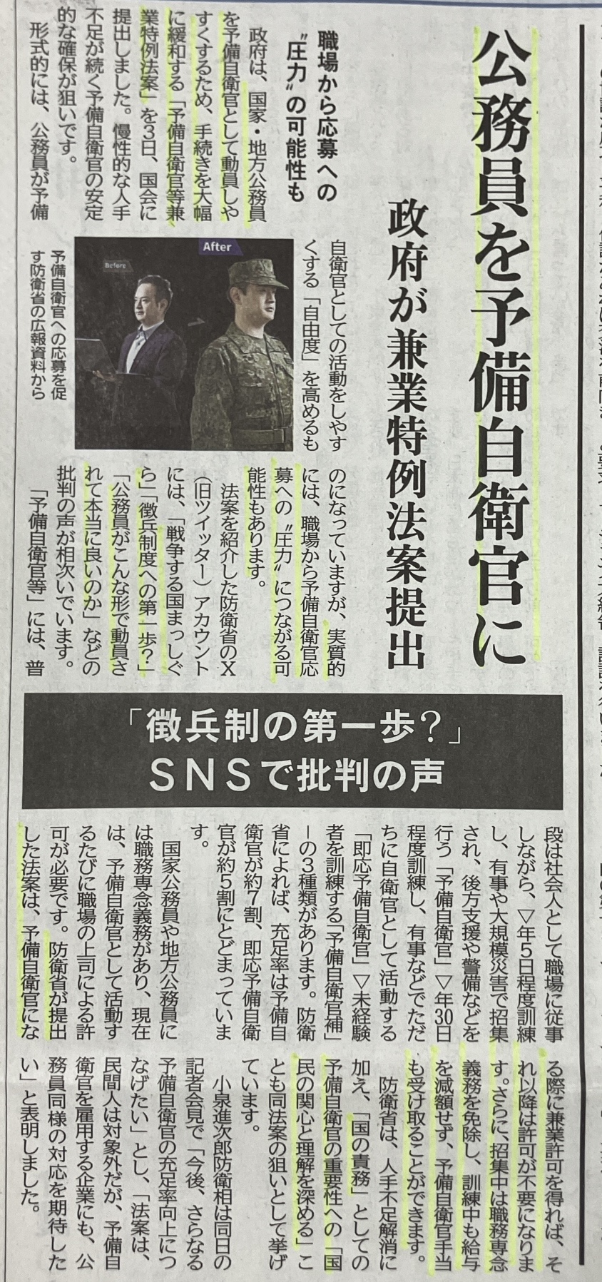 予備自衛官等兼業特例法案
