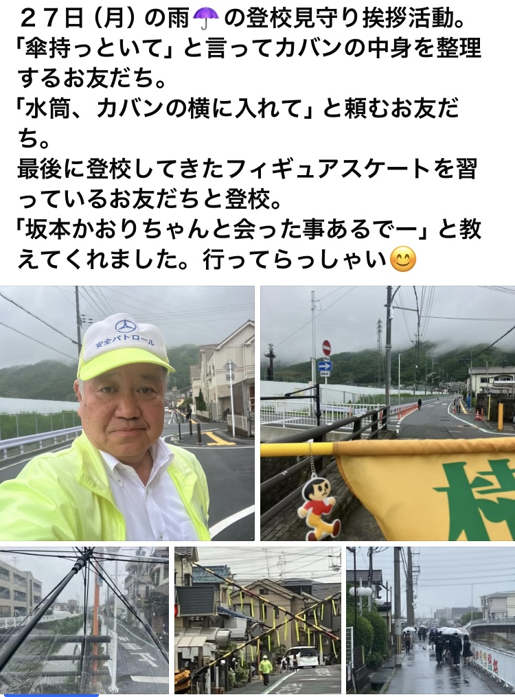 1番登校のお友だちが「何時から立ってるの」と聞いてきたので「7時40分から」と答えました。