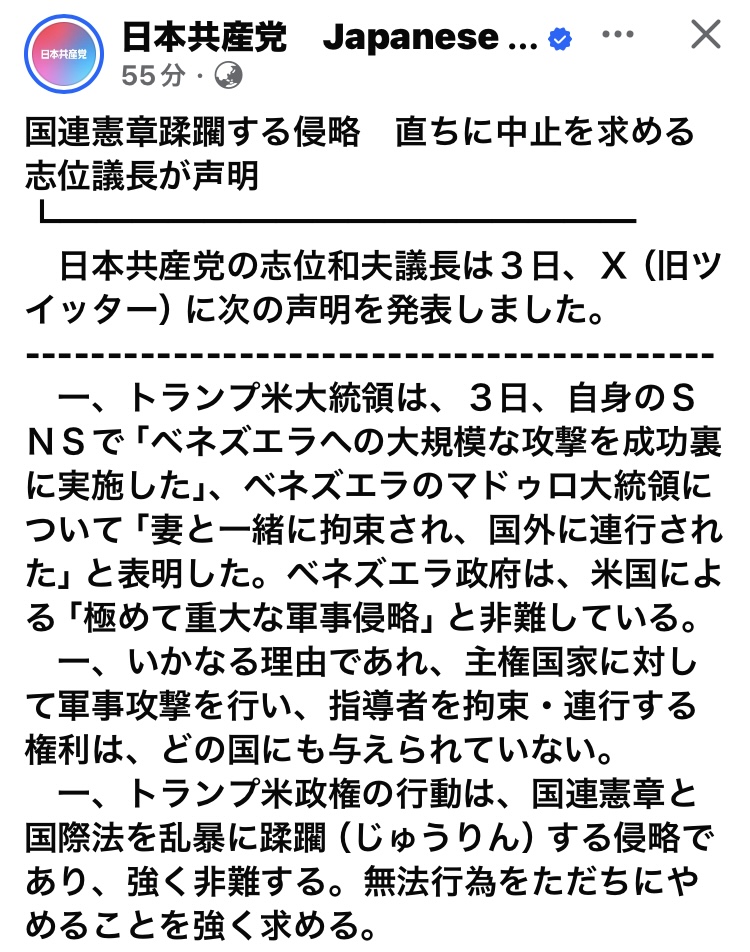 ベネズエラ政府は声明で、米国による攻撃について「目標はベネズエラの原油と鉱物の獲得にある」と非難。「国全体でこの帝国主義的侵略を打ち負かさねばならない」と表明しました。マドゥロ大統領は3日、全土に緊急事態を宣言しました。