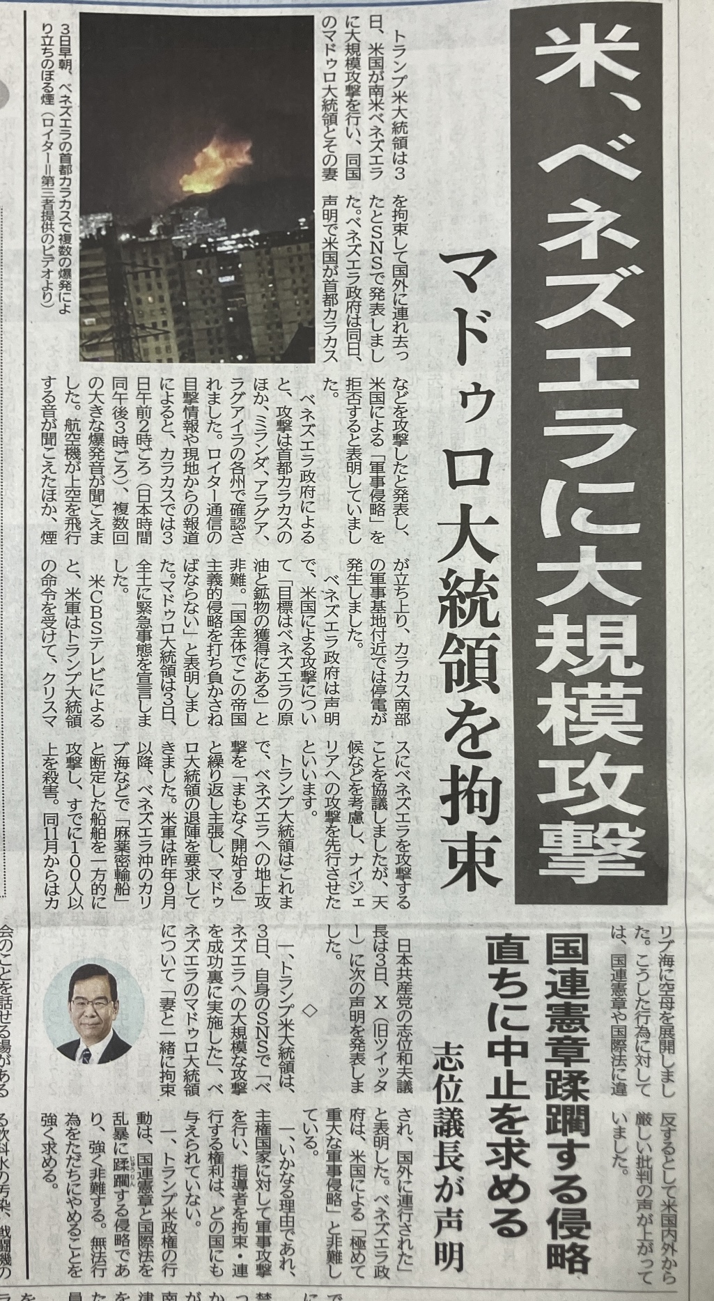トランプ大統領はこれまで、ベネズエラへの地上攻撃を「まもなく開始する」と繰り返し主張し、マドゥロ大統領の退陣を要求してきました。米軍は昨年9月以降、ベネズエラ沖のカリブ海などで「麻薬密輸船」と断定した船舶を一方的に攻撃し、すでに100人以上を殺害。同11月からはカリブ海に空母を展開しました。こうした行為に対しては、国連憲章や国際法に違反するとして米国内外から厳しい批判の声が上がっていました。