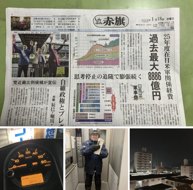 昨晩は、帰宅し晩御飯が終わったのが23時を過ぎていたので、そのまましんぶん赤旗の配達を2地域。