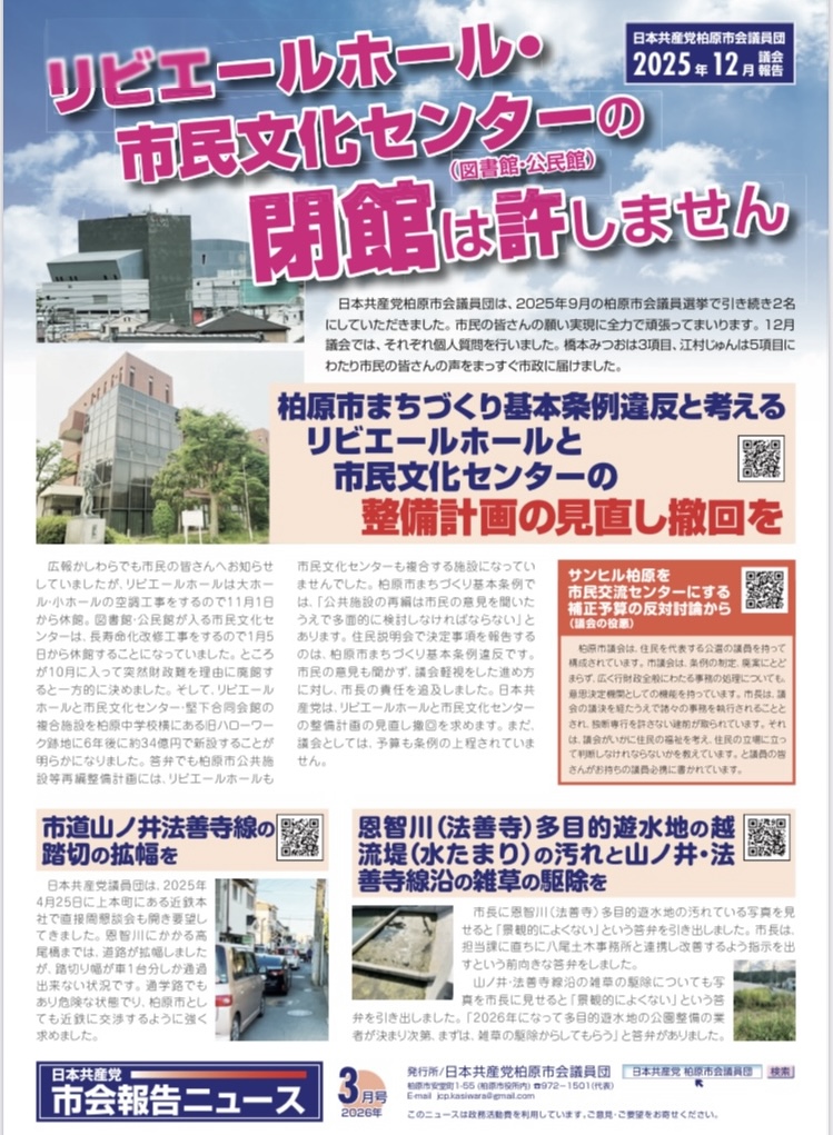 日本共産党柏原市会議員団議会報告ニュース