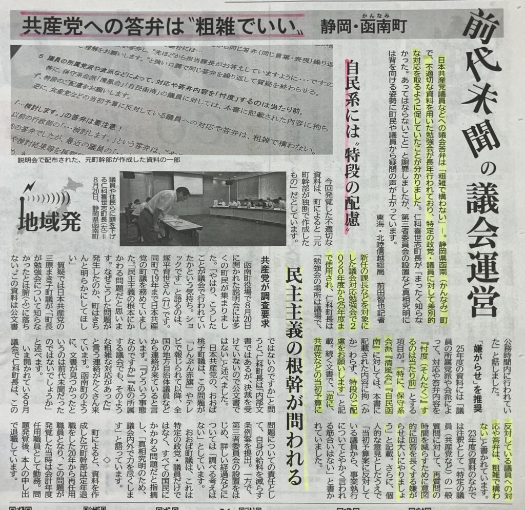 橋本も1期目で一般会計予算を反対した時、当時の市長から本会議場で「一般会計には、議員の歳費も含まれているので、歳費を受け取るな」と言われたことがありました。