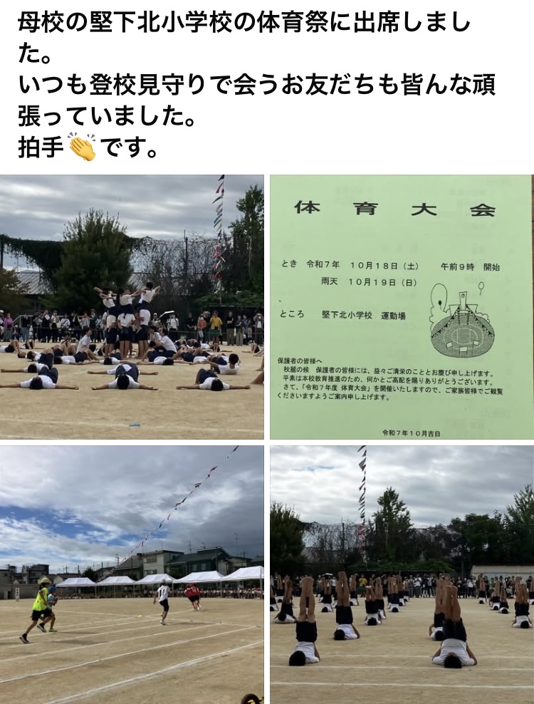 午前中は、堅下北小学校の体育祭に来賓出席しました。