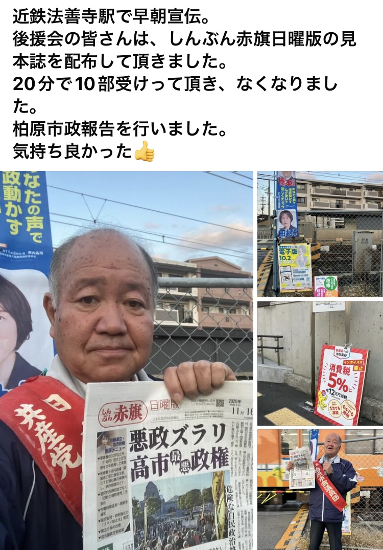 後援会ニュースの印刷のお願いで八尾の地区委員会へ行ってきました。