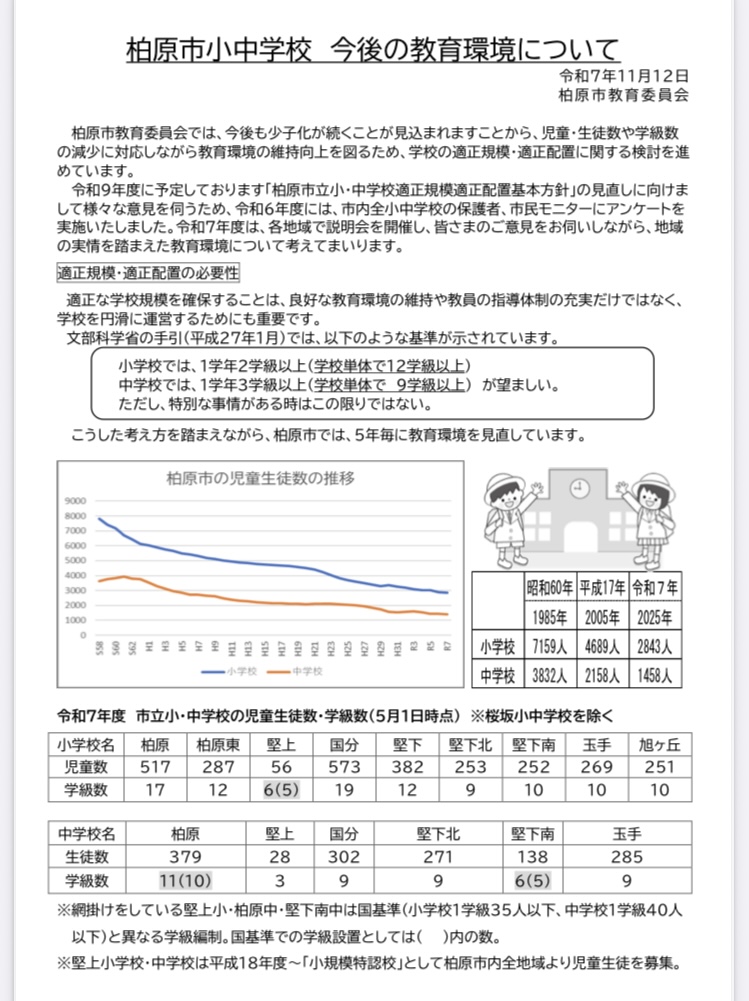 令和7年度は、保護者や地域の方々に現状をご理解いただき、「子どもたちにとってのより良い教育環境とは」といった観点で、広くご意見をいただきたいと考えております。