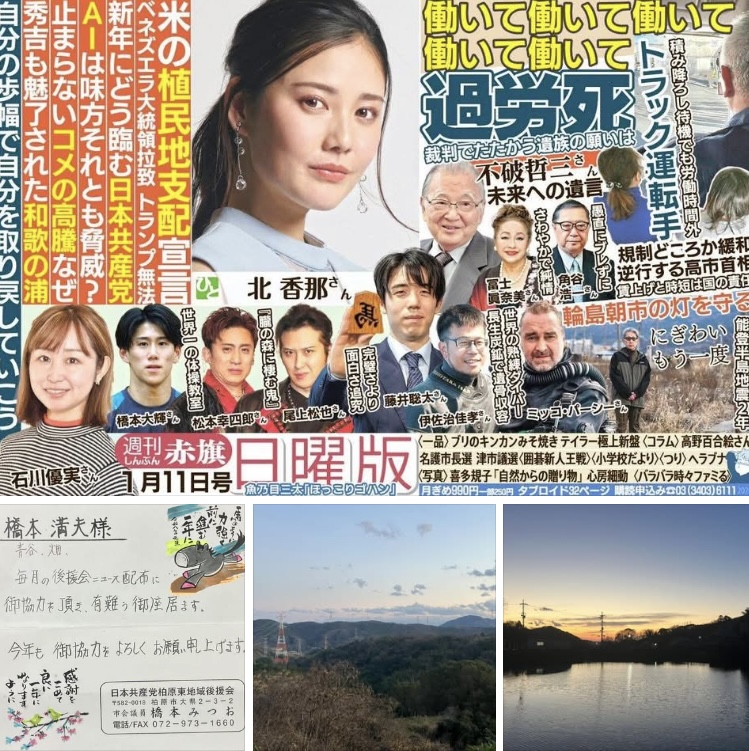 夕方からは、山間部へ、しんぶん赤旗日曜版と新春号の後援会ニュースの配布・配達を行いました。