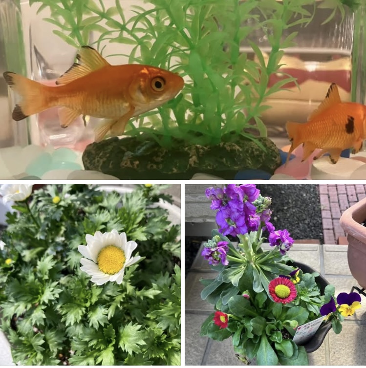 孫のもーちゃんの金魚とお花。