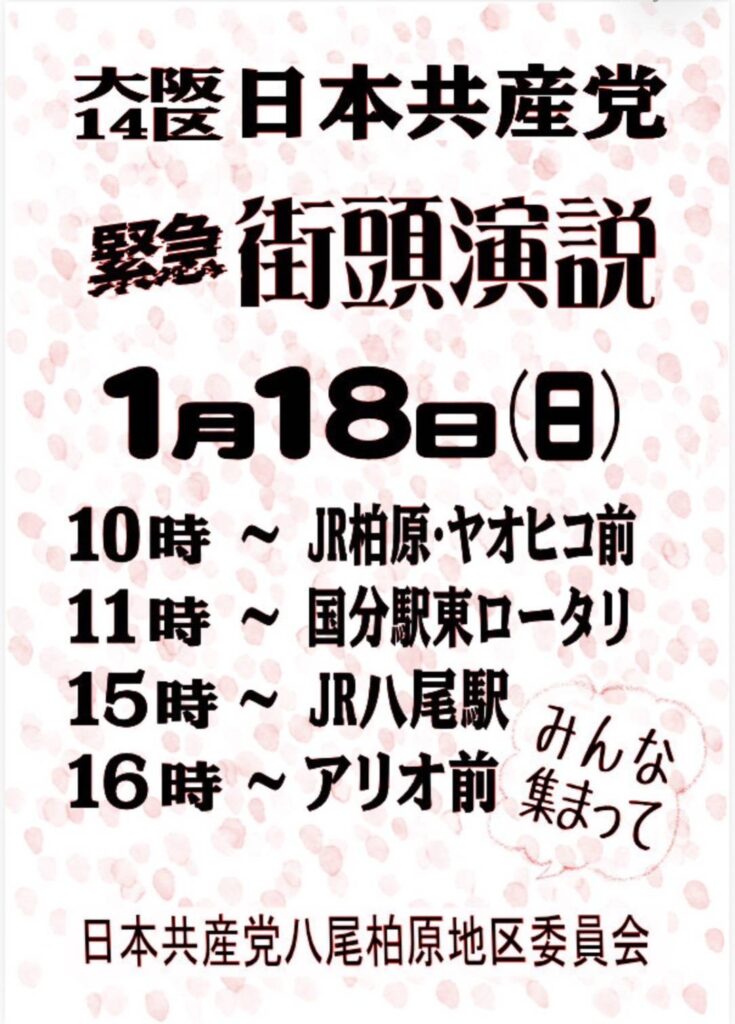 夜は、八尾で地区党の会議が行われます。