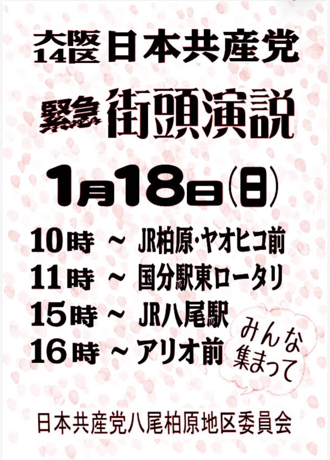 予定していた駅宣伝、日中の宣伝も断念しました。