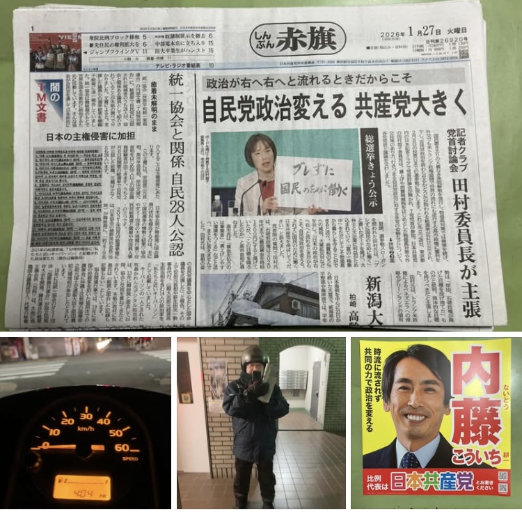 日本共産党の議席は、暮らしも平和もこわす暴走政治を止め、希望のもてる新しい政治をつくる確かな力です。日本共産党は、高市政権とこの政権に迎合する勢力に正面から対決して、「憲法を真ん中にすえた確かな共同」をよびかけ、国民の共同の力で、日本国憲法を破壊する戦争への道、極右・排外主義の流れに断固として立ち向かおうと力をつくしてまいります。