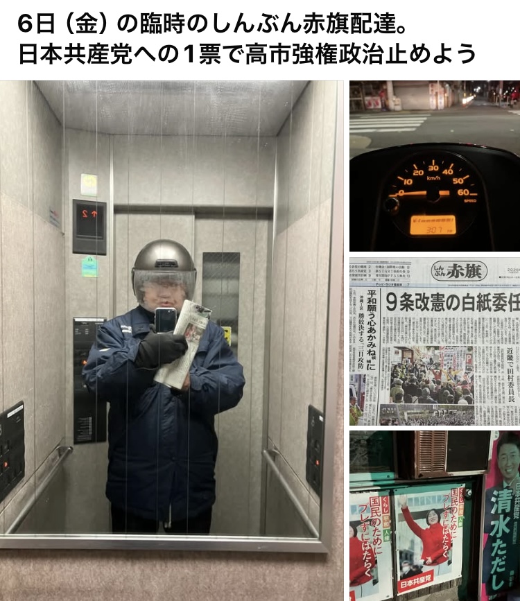 臨時でしんぶん赤旗配達。