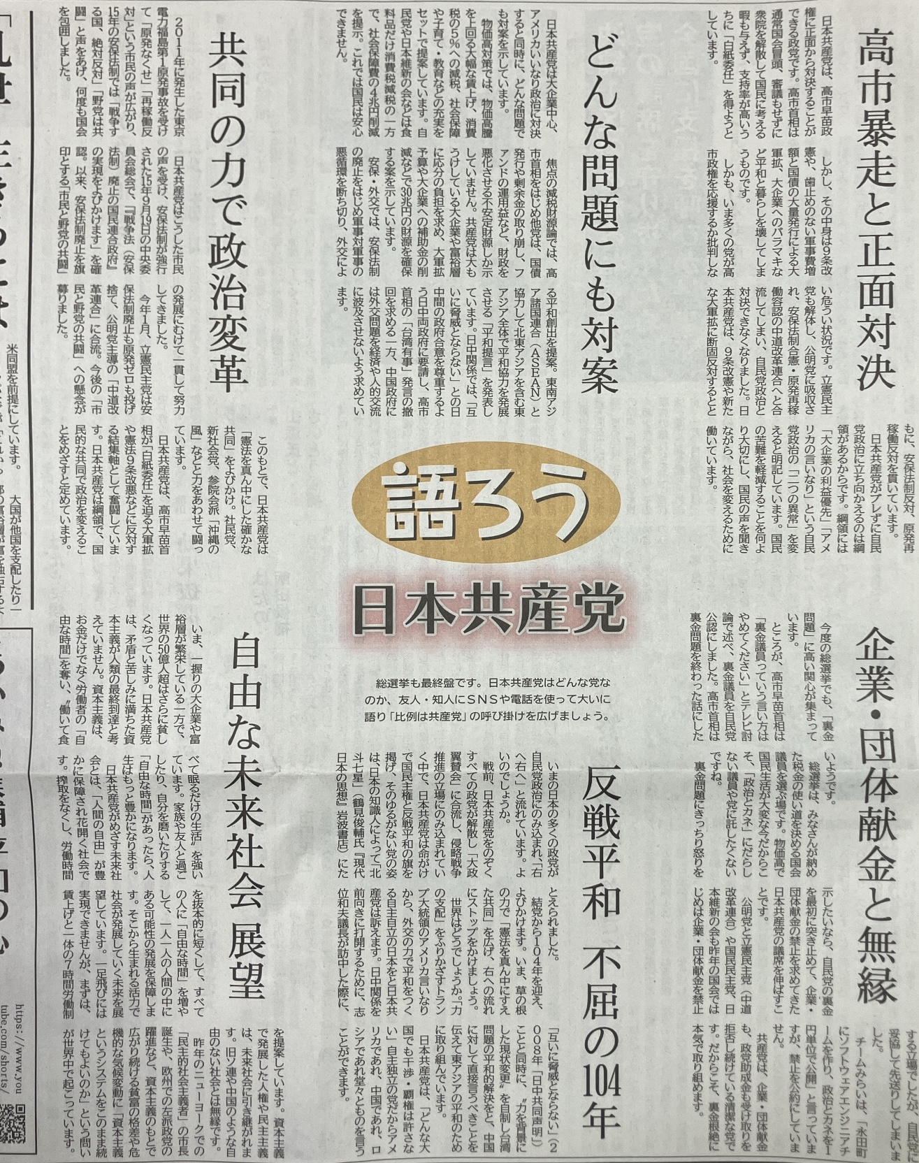 9条改憲の白紙委任ノー/日本共産党への1票で高市強権政治止めよう