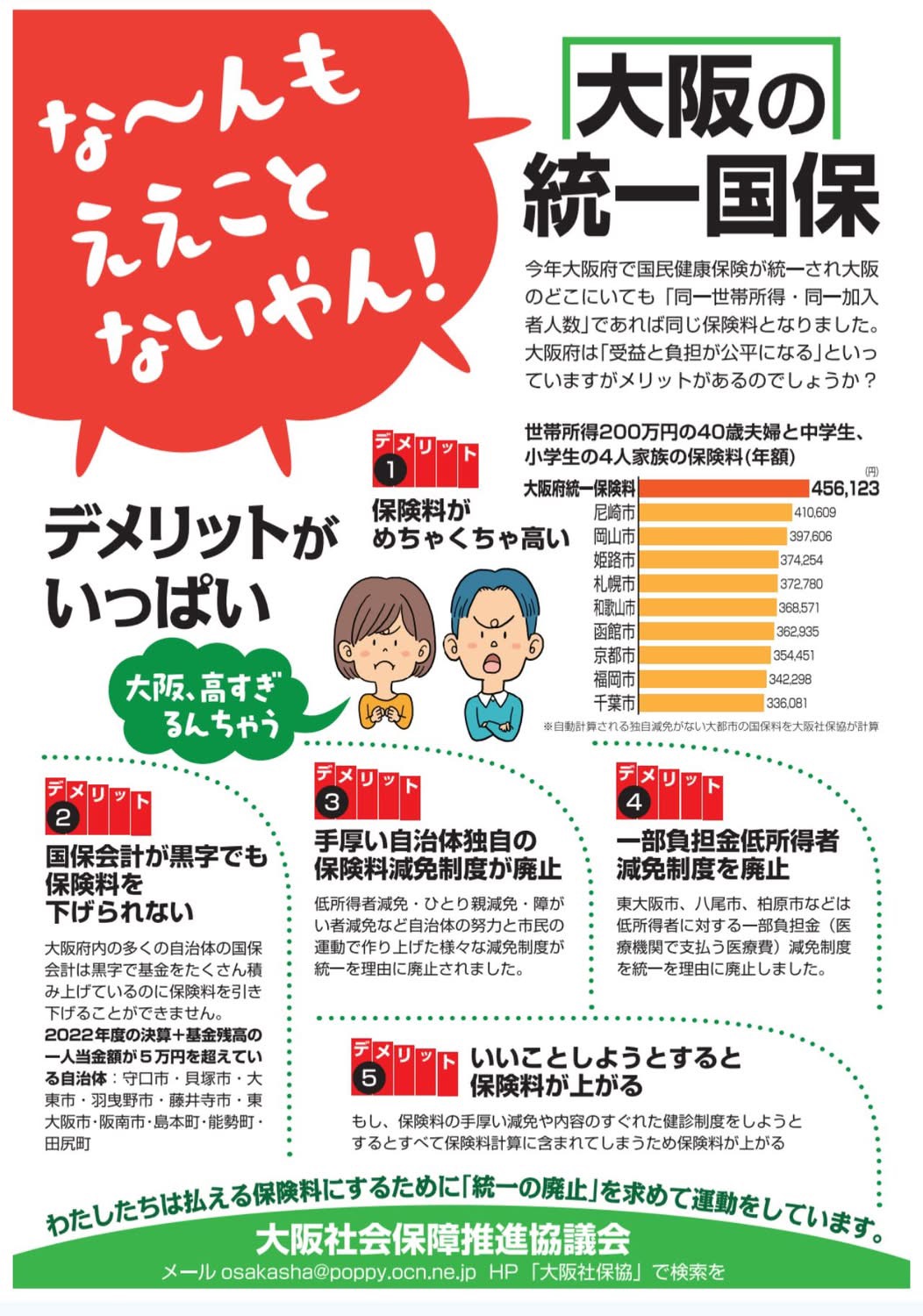 大阪維新の会のせいで大阪府民の国民健康保険料金は、全国トップレベルに高いです。