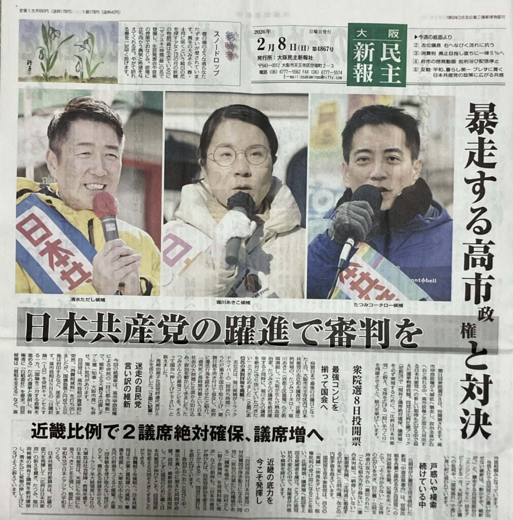 共同の力で政治を変える――日本共産党の大方針です。一致する政党や団体、そして幅広い市民の方々と力を合わせてこそ、自民党政治を変えることができます。いまも、日本共産党は、高市政権とそれに迎合する勢力に正面から対決して、「憲法を真ん中にすえた確かな共同」をよびかけ、共同の力で、日本国憲法を壊す戦争への道、極右・排外主義の流れに立ち向かおうと力をつくしています。