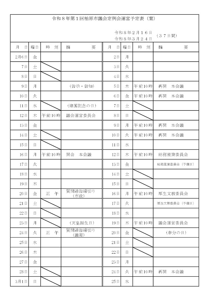 柏原市議会3月議会の日程