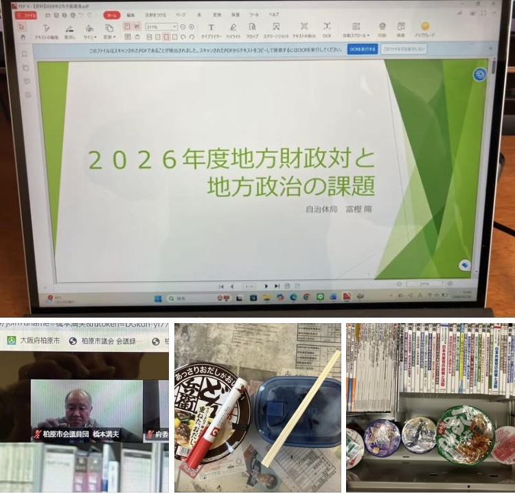 午後1時からは、党大阪府委員会主催で中央の自治体局から2026年度地方財政と地方政治の課題でZOOM会議を視聴しました。