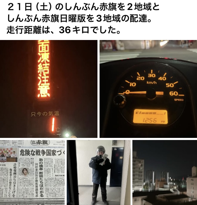 しんぶん赤旗の配達2地域としんぶん赤旗日曜版を山間部も含め3地域の配達からスタート。
