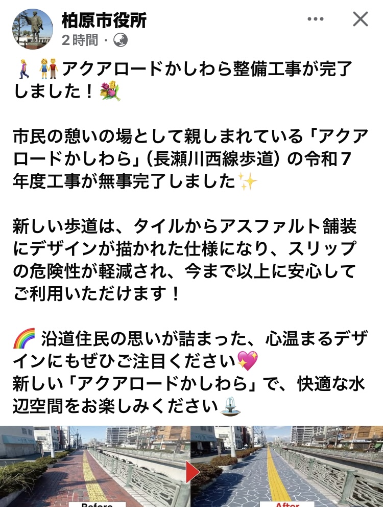 柏原市のフェイスブックより。