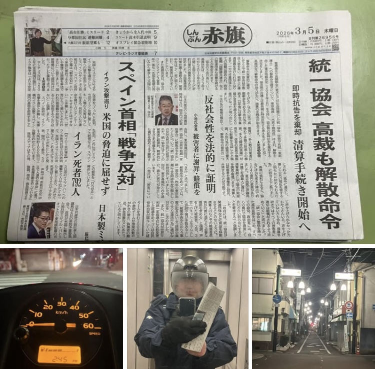 しんぶん赤旗の配達を2地域。