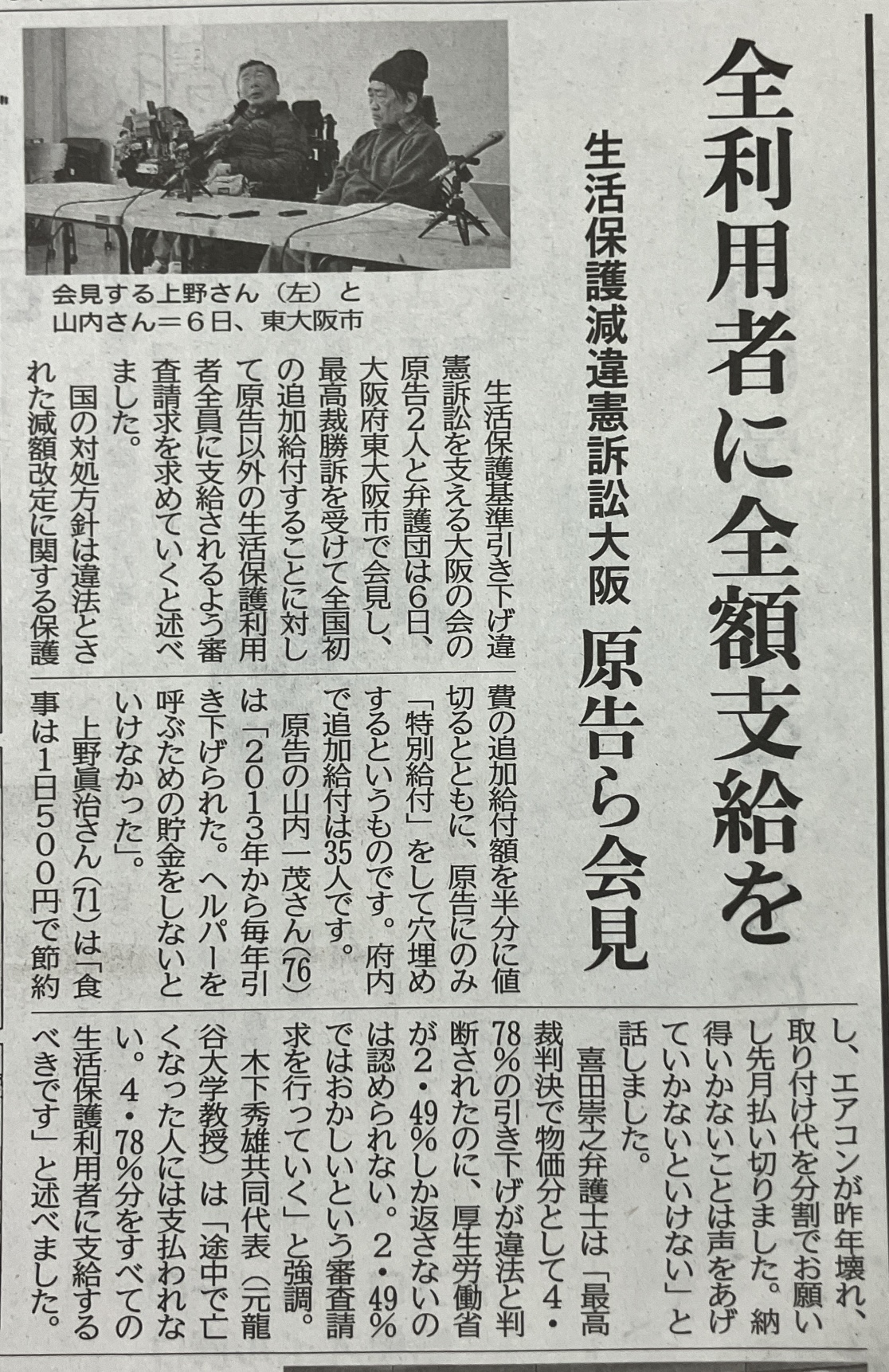 しんぶん赤旗の配達2地域としんぶん赤旗日曜版の配達を山間部も含め3地域。