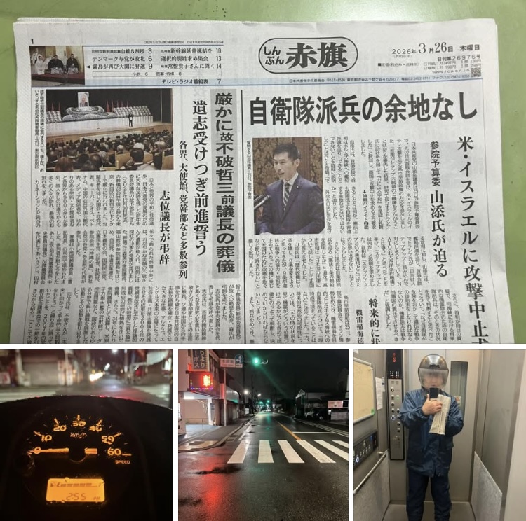 小雨の中のしんぶん赤旗の配達を2地域。