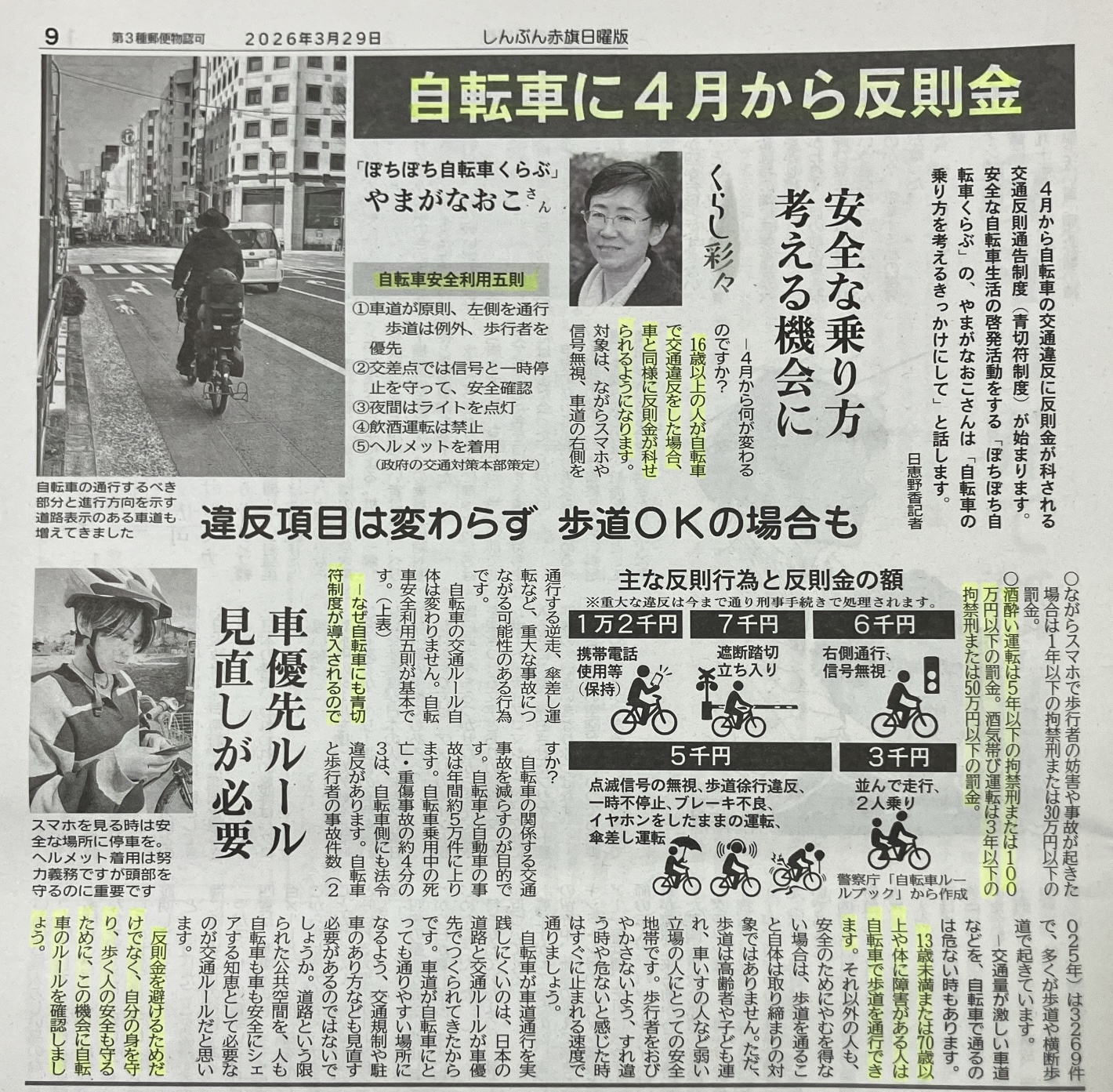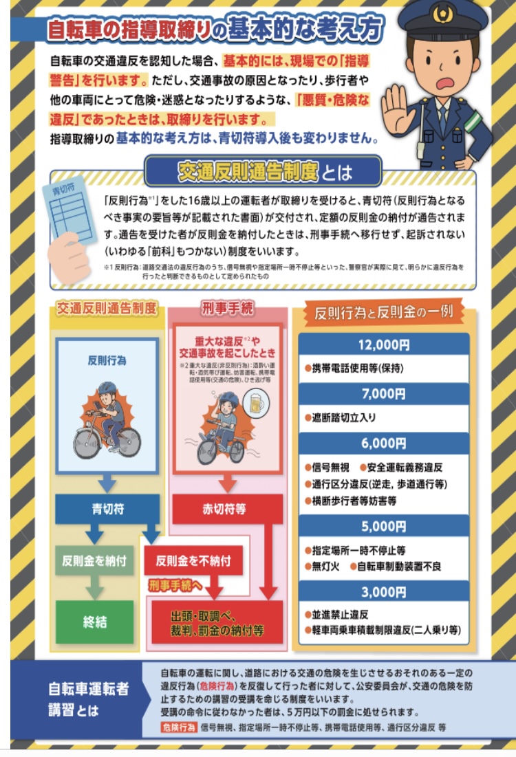 4月1日より、自転車に関する道路交通法が改正され、青切符が導入されます。