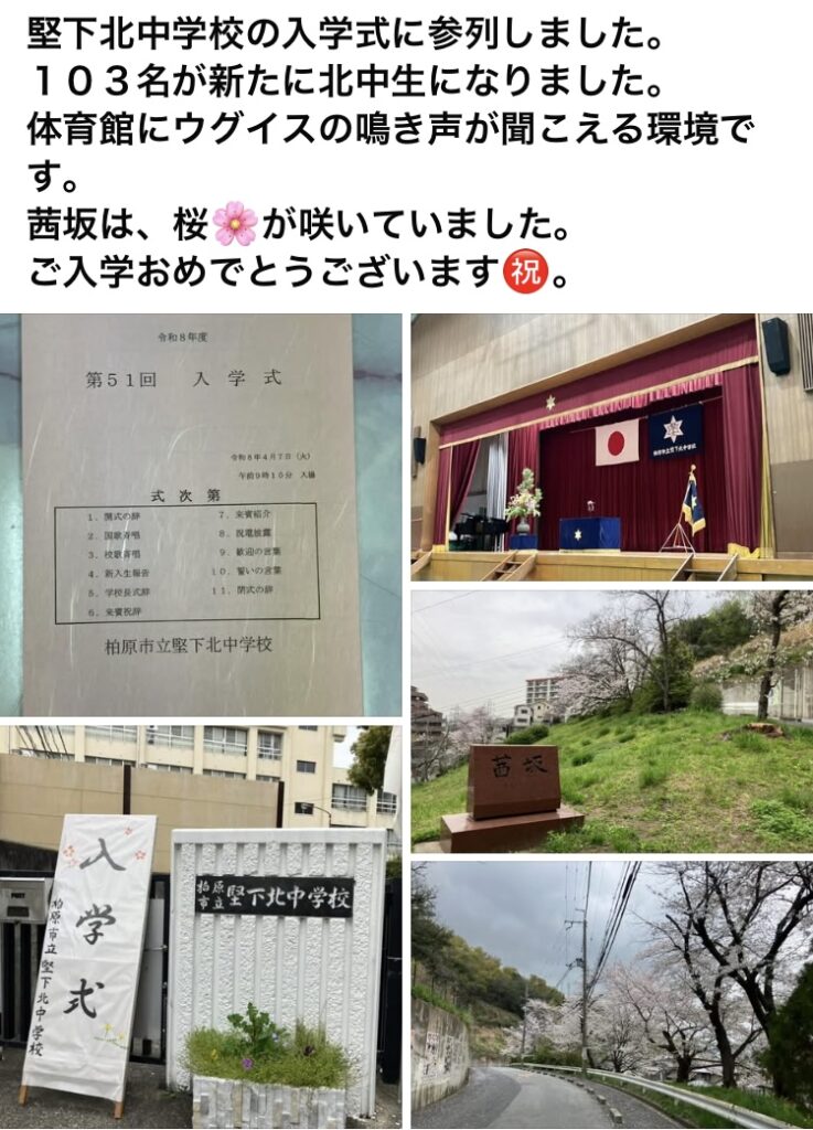 北中は、堅下北小学校と堅下小学校の卒業生が入学します。
