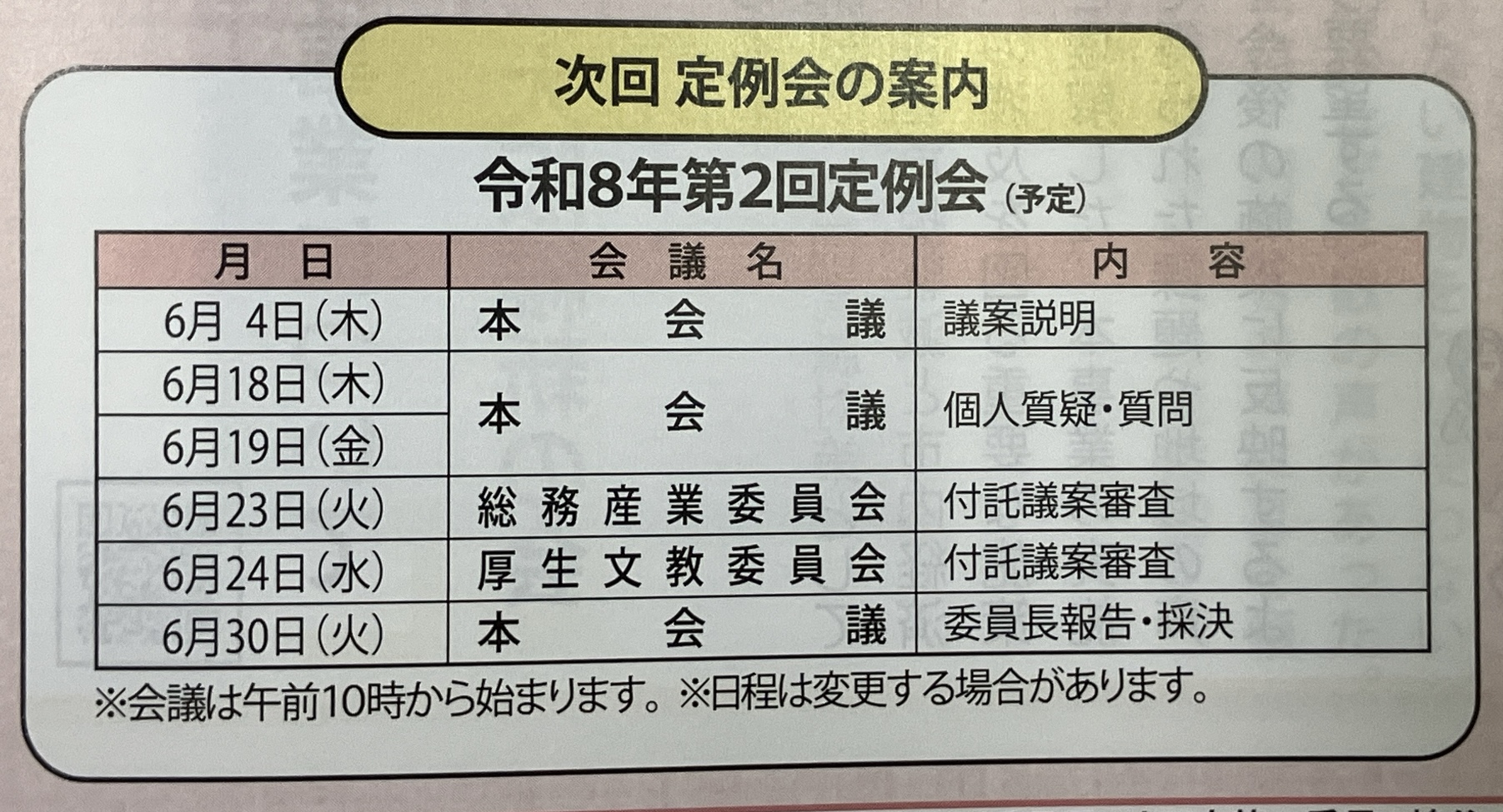 6月議会は40分の個人質問を行います。