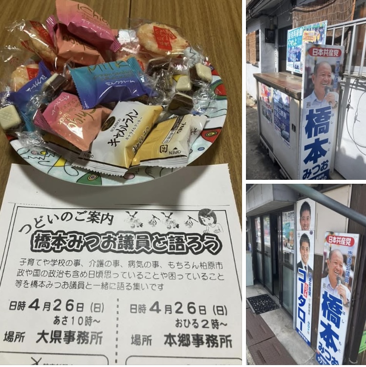 午前、午後と橋本みつお議員と語ろうの集いを大県・本郷事務所で行いました。